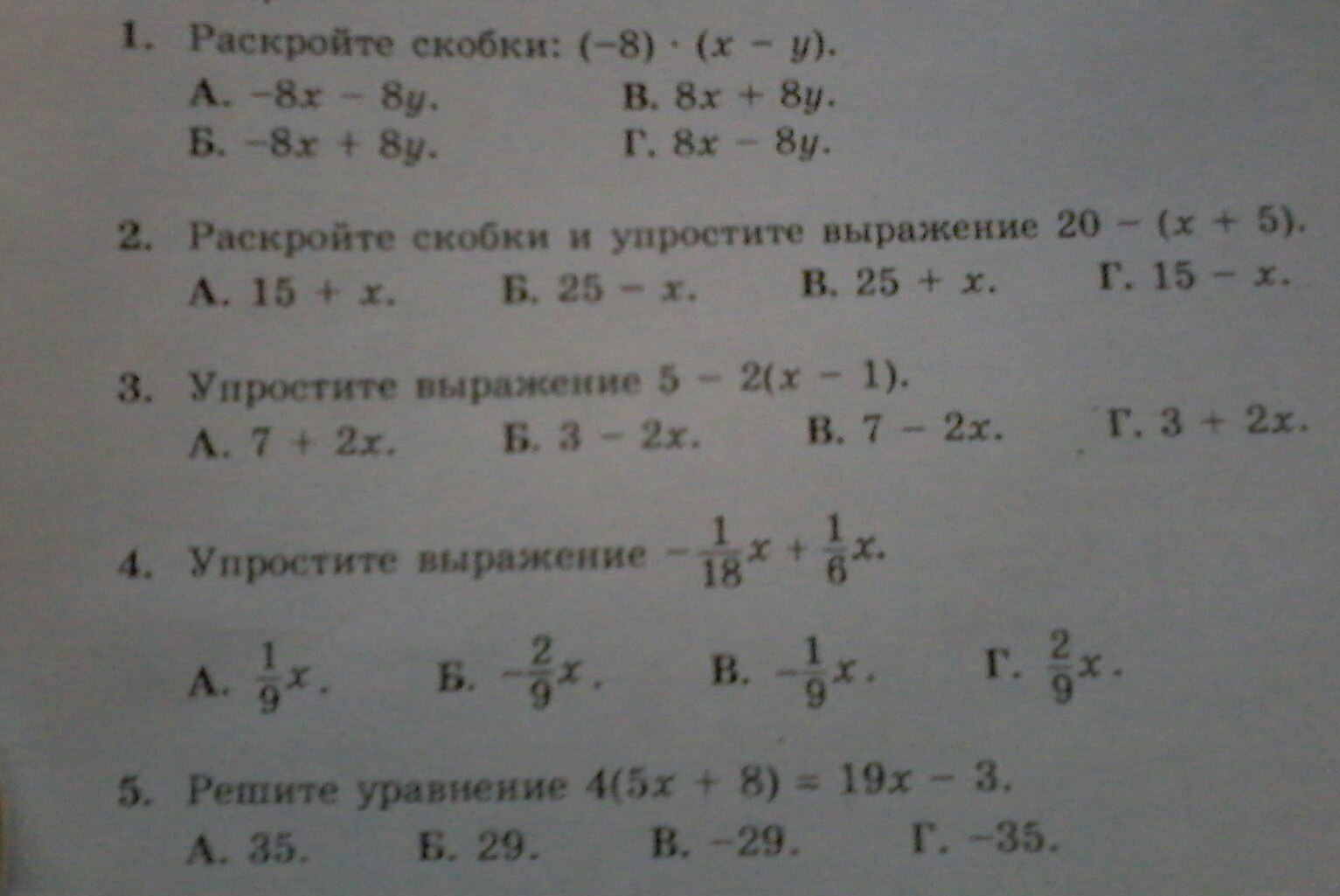 Б. -8х+8у Г. 8х-8у