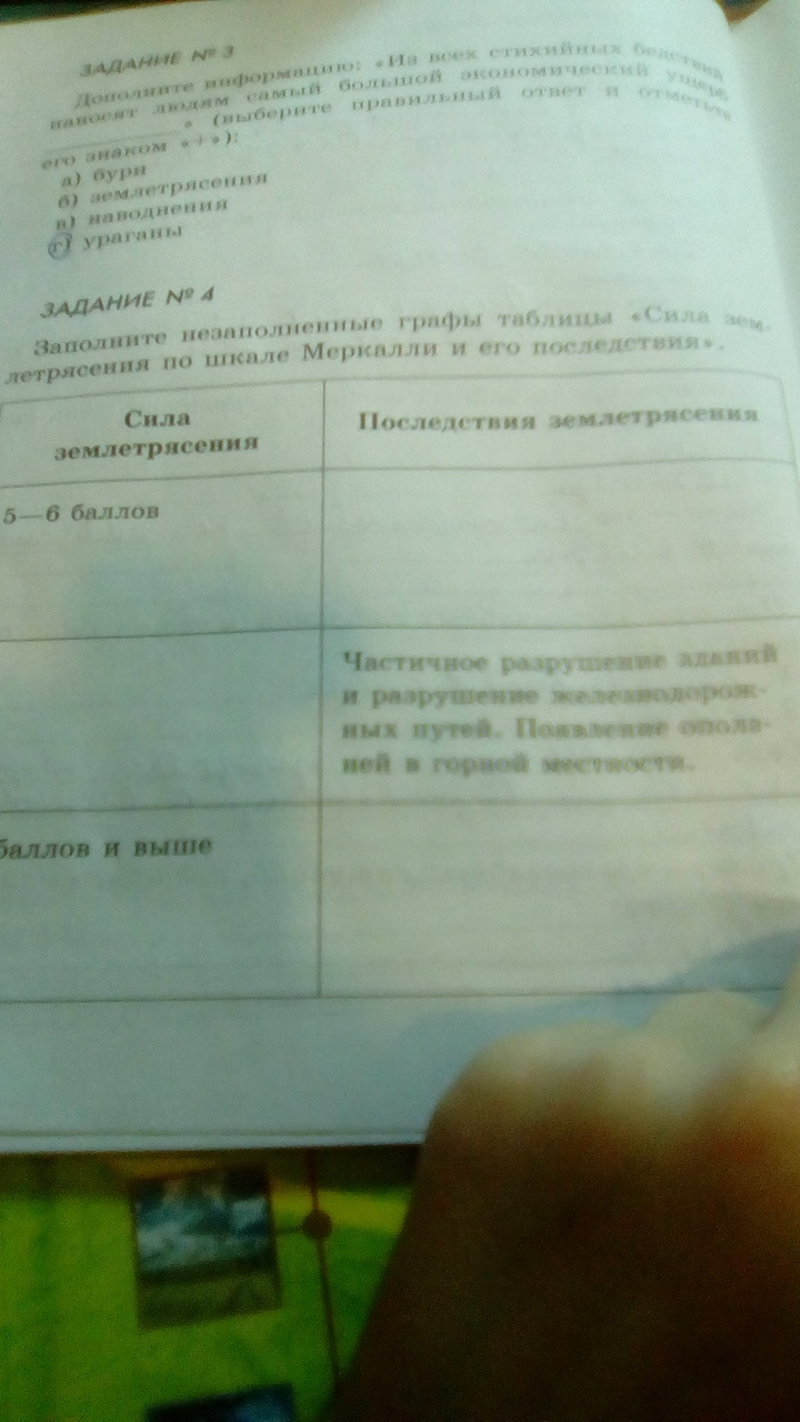 1)Землетрясение силой 5—6 баллов приводит к лёгкому повреждению зданий: трескается штукатурка, бьются стёкла. Человеку трудно устоять на ногах.