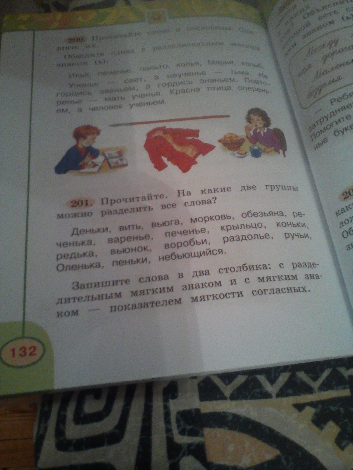 прочитайте. На какие две групы можно разделить все слова?. Запишите слова в два столбика: с разделительным мягким знаком и с мягким знаком- показателем мягкости согласных.