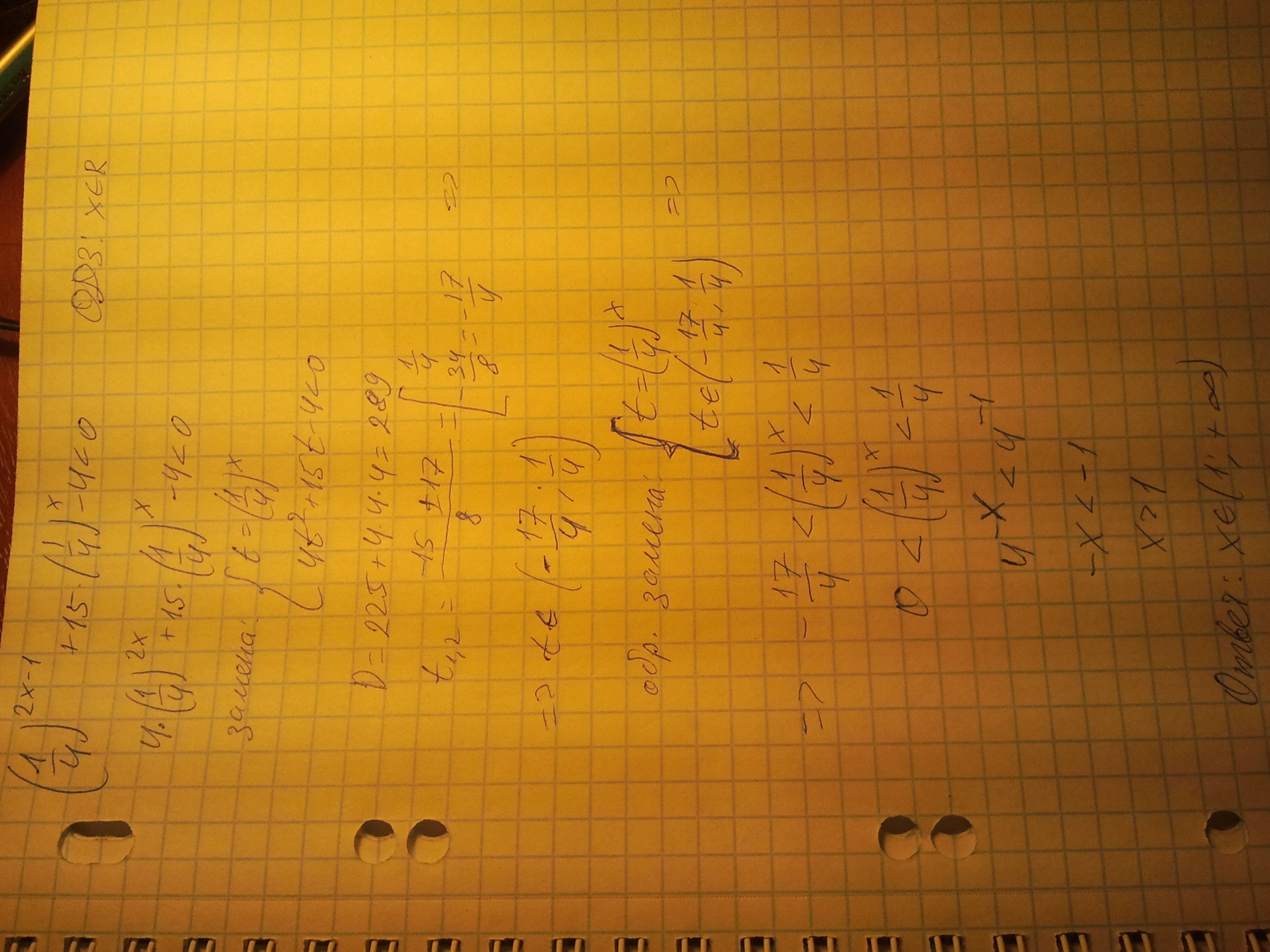 ну, было (1/4)^2x-1, это можно записать как (1/4)^(2x)*(1/4)^(-1), а (1/4)^(-1) = 4