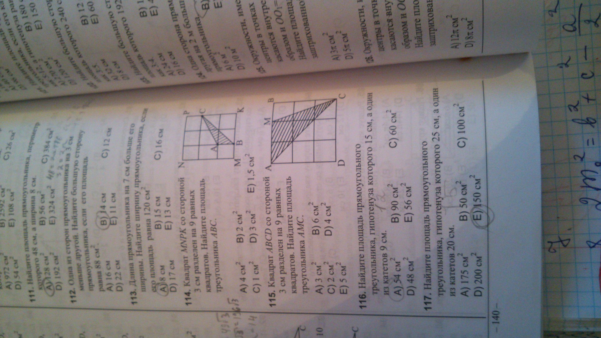 по рисунку треугольник расположен на 3 квадратах, на первом квадрате он занимает половину, на двух других четверть