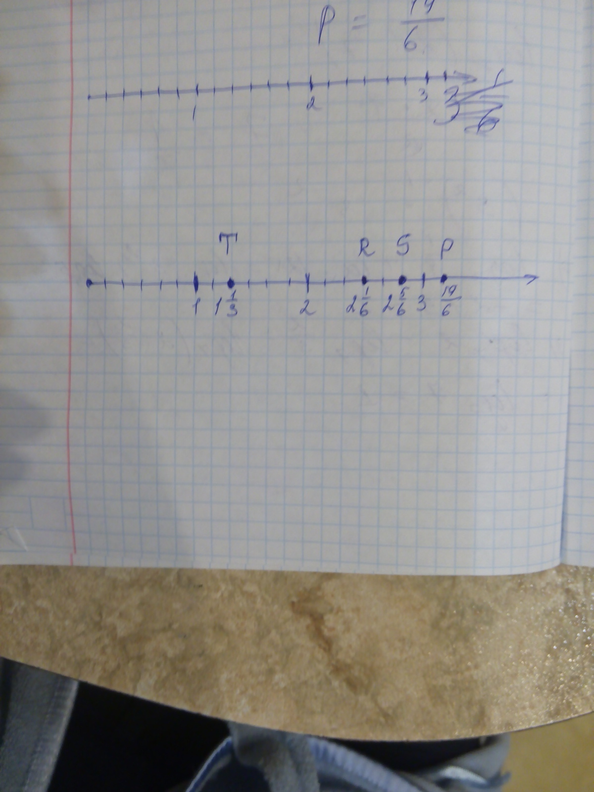 Начертите координатный луч, приняв за единичный отрезок 6 клеток тетради. Отметьте на координатном луче точки: Т (1 целая 1/3), S (2 целых 5/6), R (2 целых 1/2), Р (19/6). Помогите пожалуйста!!!