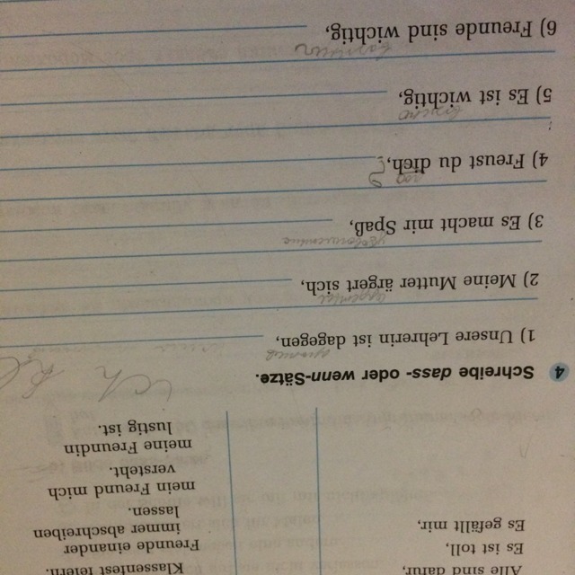 В смысле перевод самого задания? Напишите предложения с wenn или dass