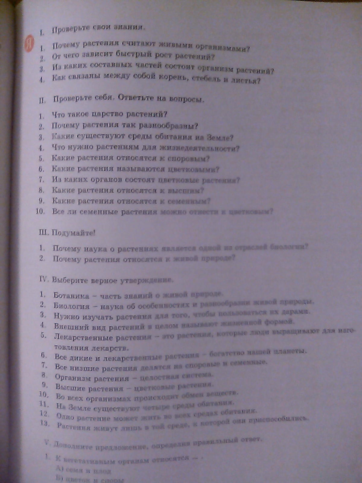 3.растение состоит из вегетативных органов(стебель,листья,корень) и генеративных органов(цветки,семена,плоды,пестики и тычинки)