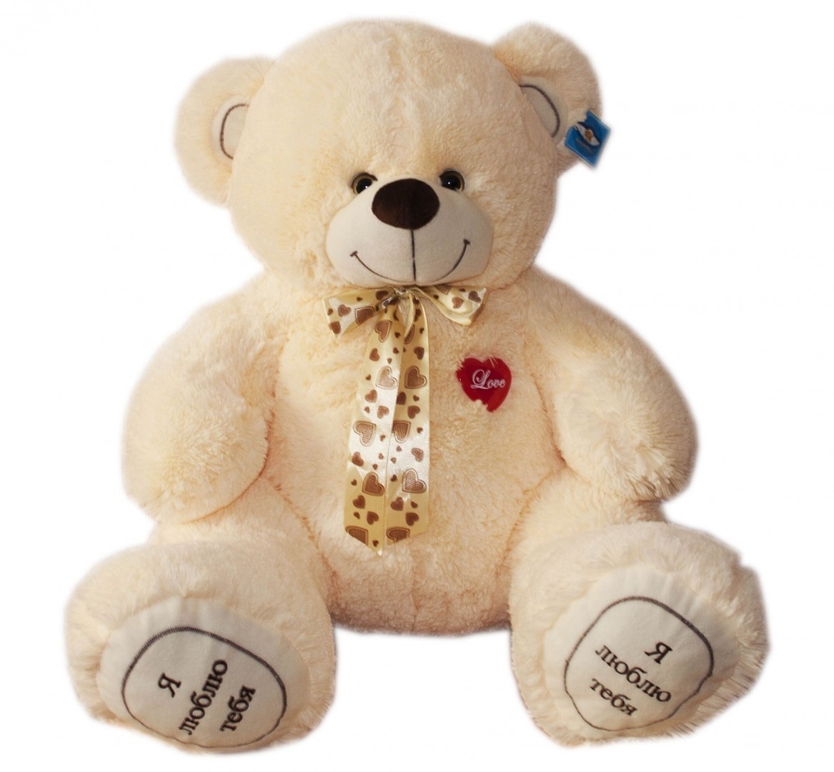 У меня дома есть большой плшевый мишка .Он бежево-коричневого цвета с якрим алым бантиком на шейке. Его глаза ,словно космос ,такиеже черные и глубокие. Носик маленьких черный.Еще у него есть одно особенное отличие,у него на левой лапке есть знак-цветочет,поэтому я его развала Цветочком.А на другой лапке написанно-"Teddy baer".Я очень обожаю этого милого мишку!