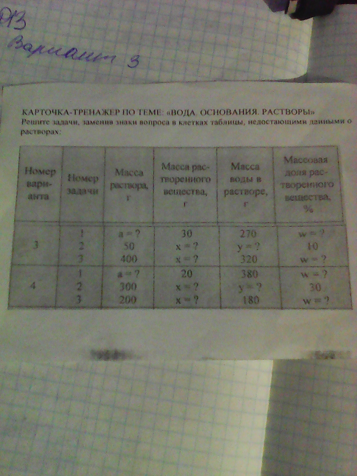 Решите задачи, заменив знаки вопроса в клетках таблицы недостающими данными о растворах: