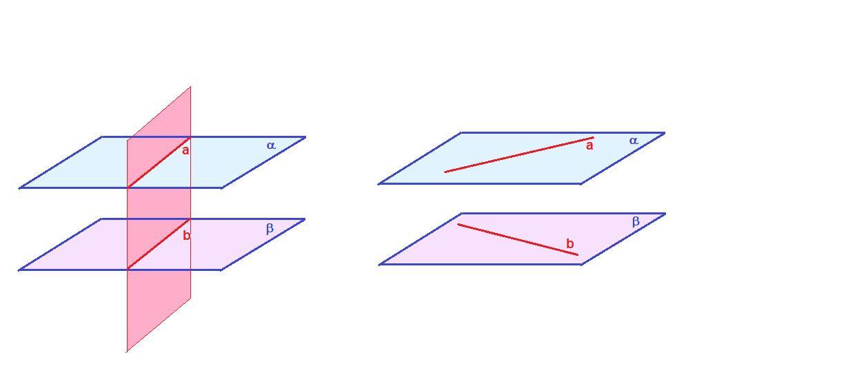б) прямые а и b могут быть скрещивающимися, если через них нельзя провести плоскость. Так как в этом случае прямые не параллельны, но и не имеют общих точек (так как лежат в параллельных плоскостях).