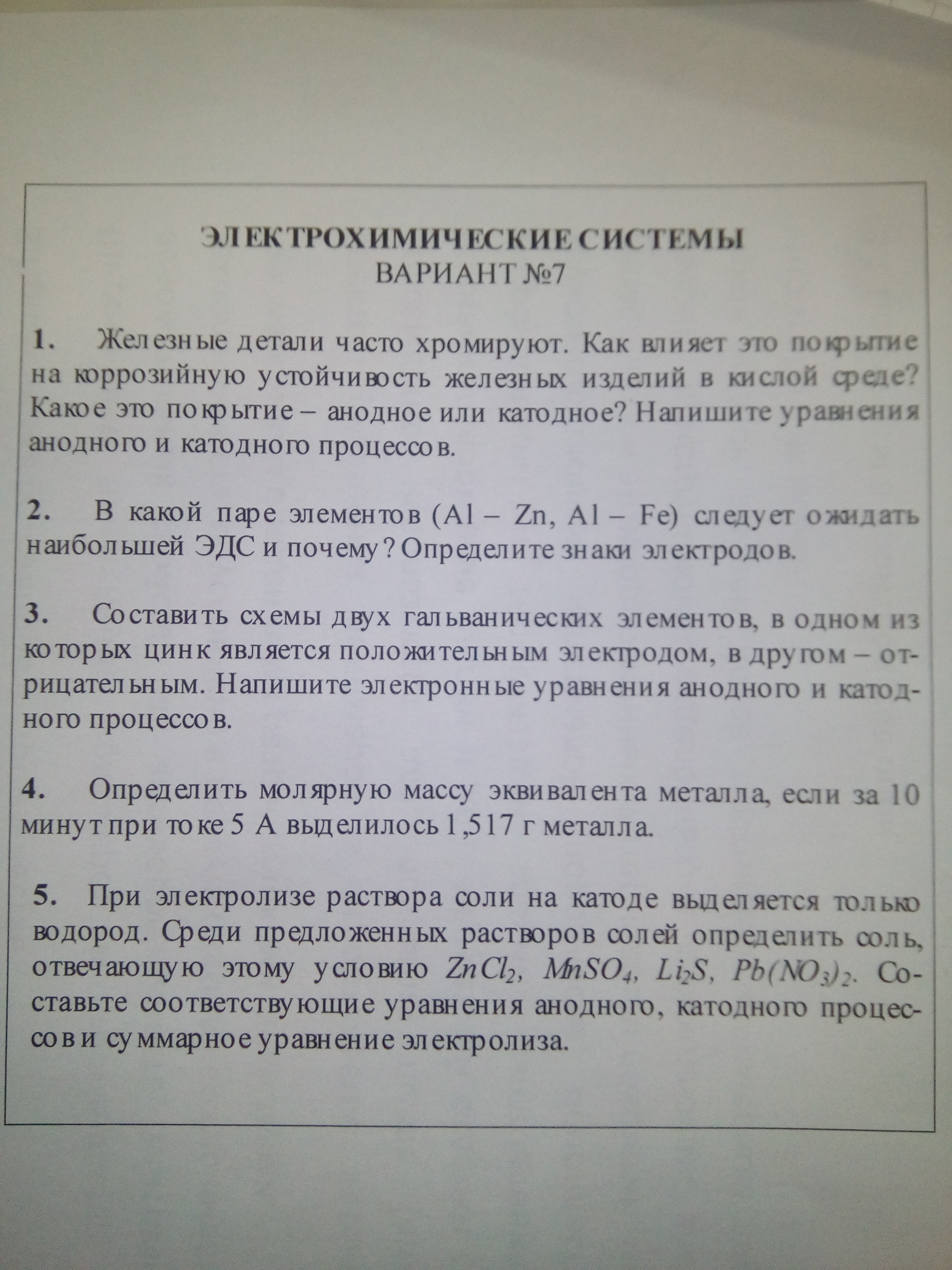 Поскольку рН<7, т. е. среда кислая, деполяризация – водородная (это катодный процесс) ; а поскольку хром активнее железа, то на аноде будет востанавливаться хром: