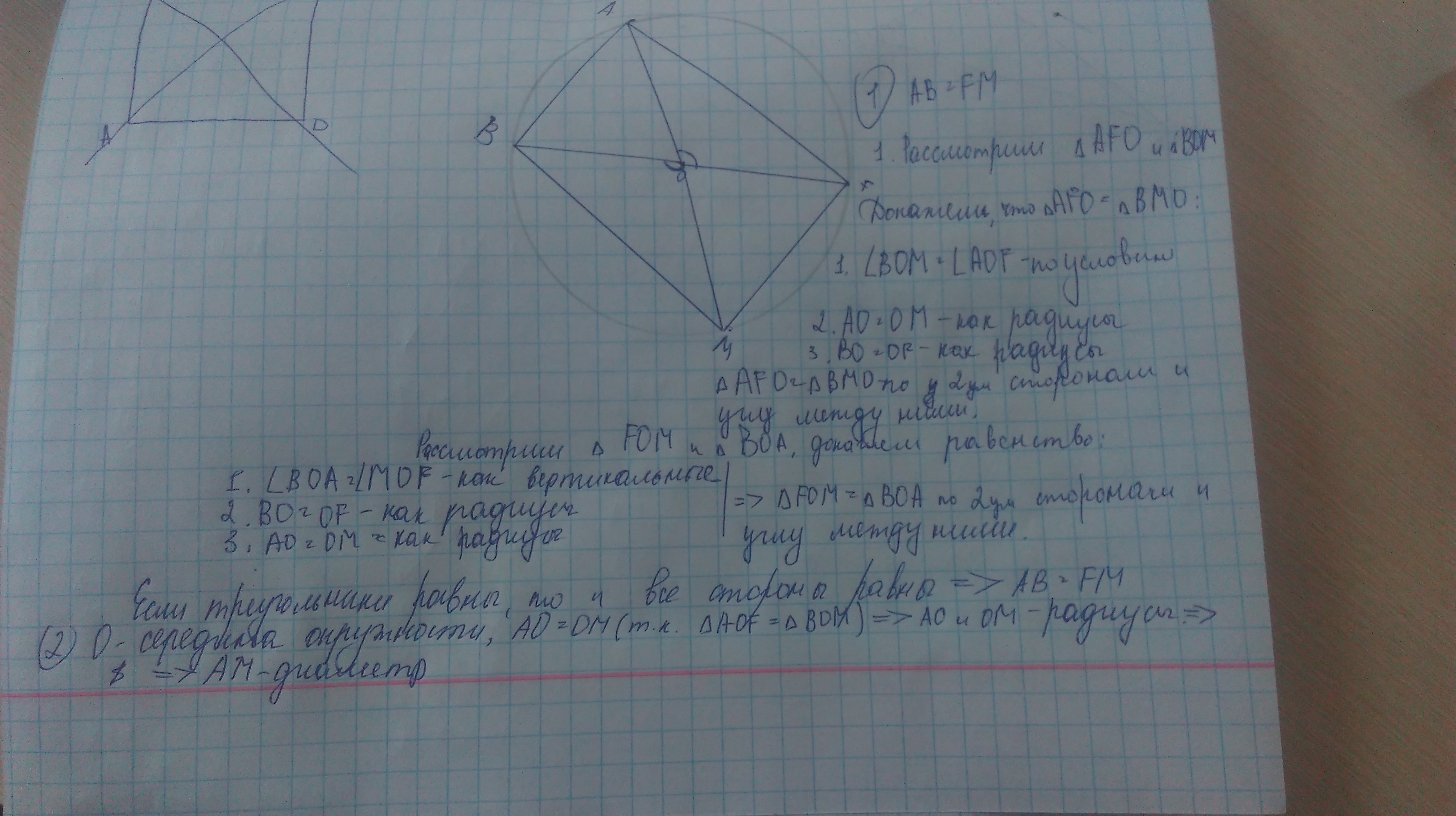 . В окружности с центром в точке О проведены хорды АF и ВM так, что ∠AOF=∠BOM. Докажите: а) АB=FM; б) АM – диаметр окружности. Помогите пожалуйста