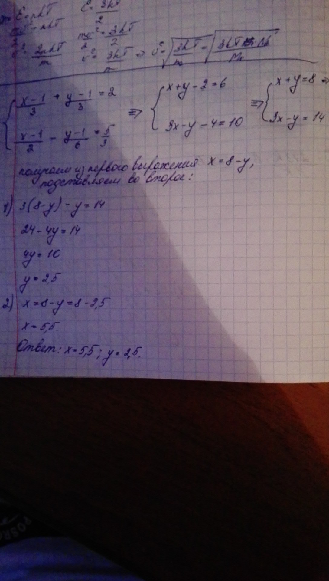 Ответ: х = 5,5; у = 2,5.