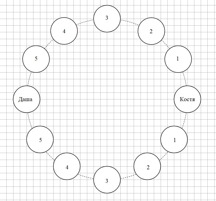 Несколько девочек и 1 мальчик стоят в хороводе. Даша стоит от Кости шестой, в какую сторону не считать. Сколько детей стоит в хороводе?