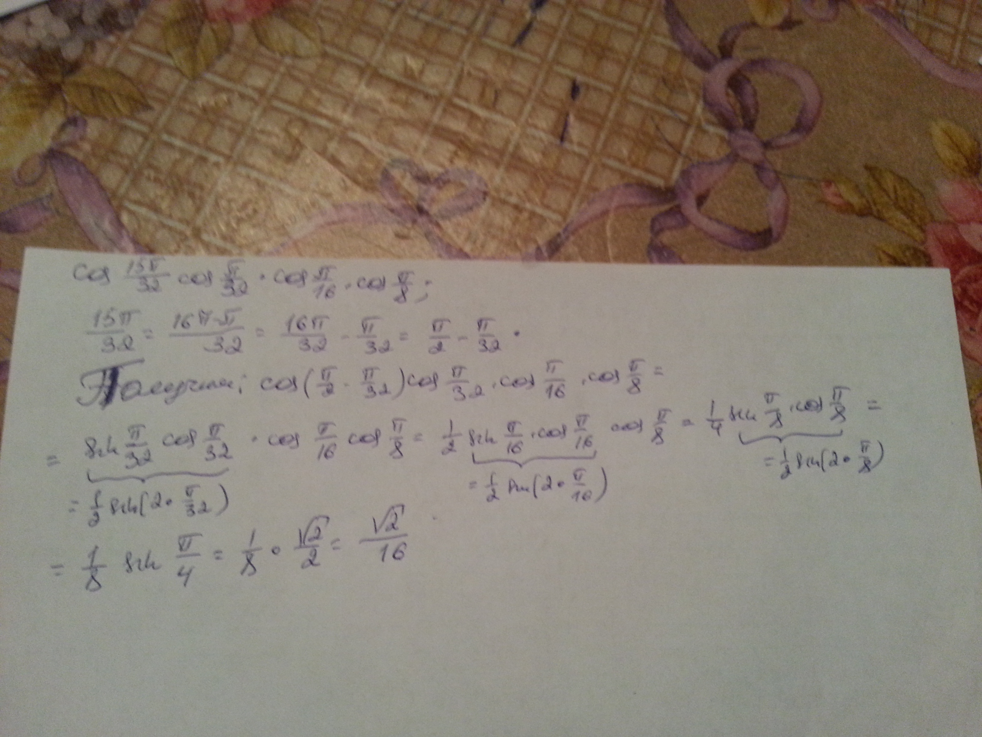 Тригонометрия. Вычислить cos15п/32 * cosп/32 * cos п/16 * cosп/8