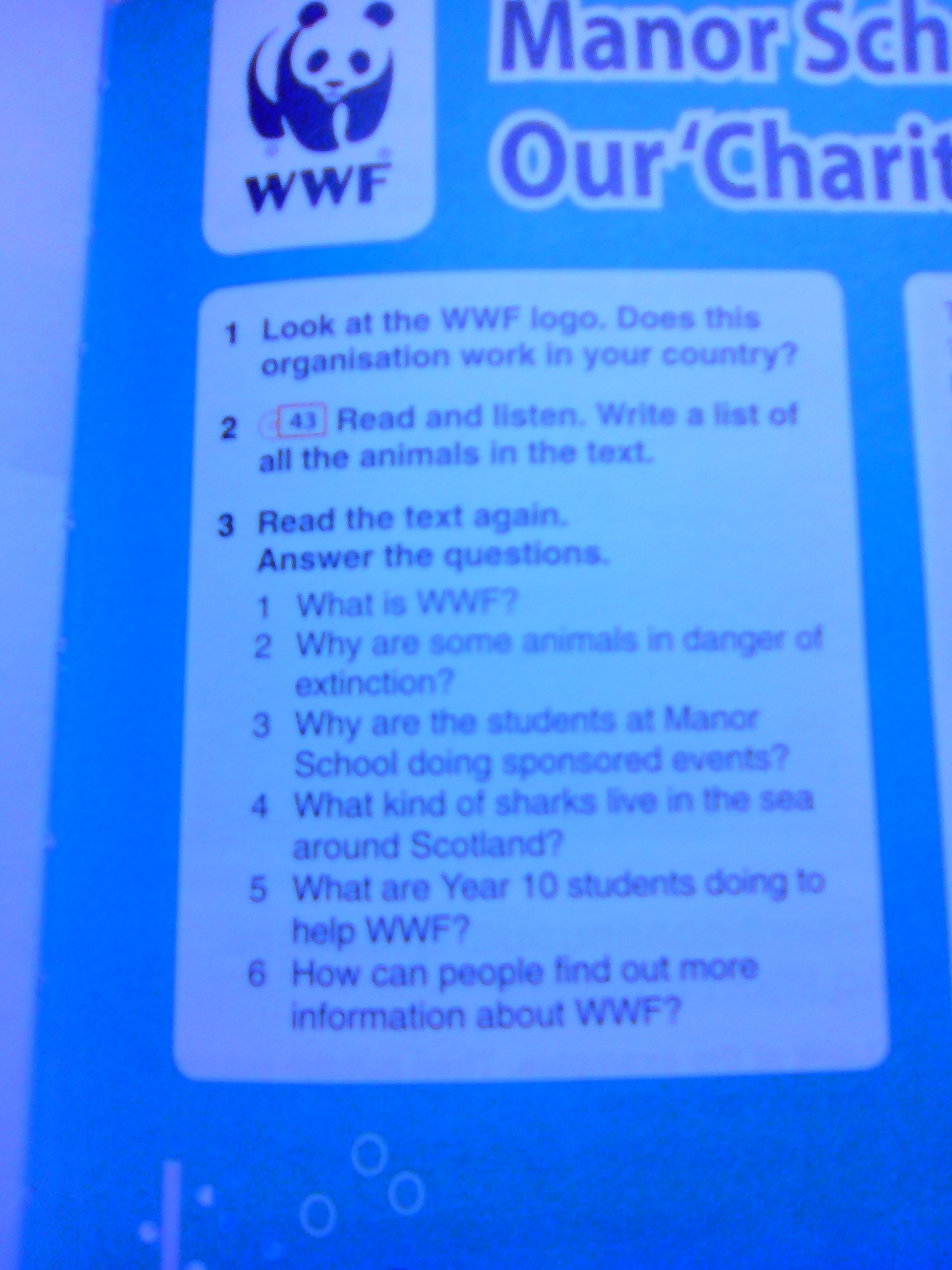 1) посмотри на логотип "всемирного фонда дикой природы". Эта организация работает в твоей стране?
