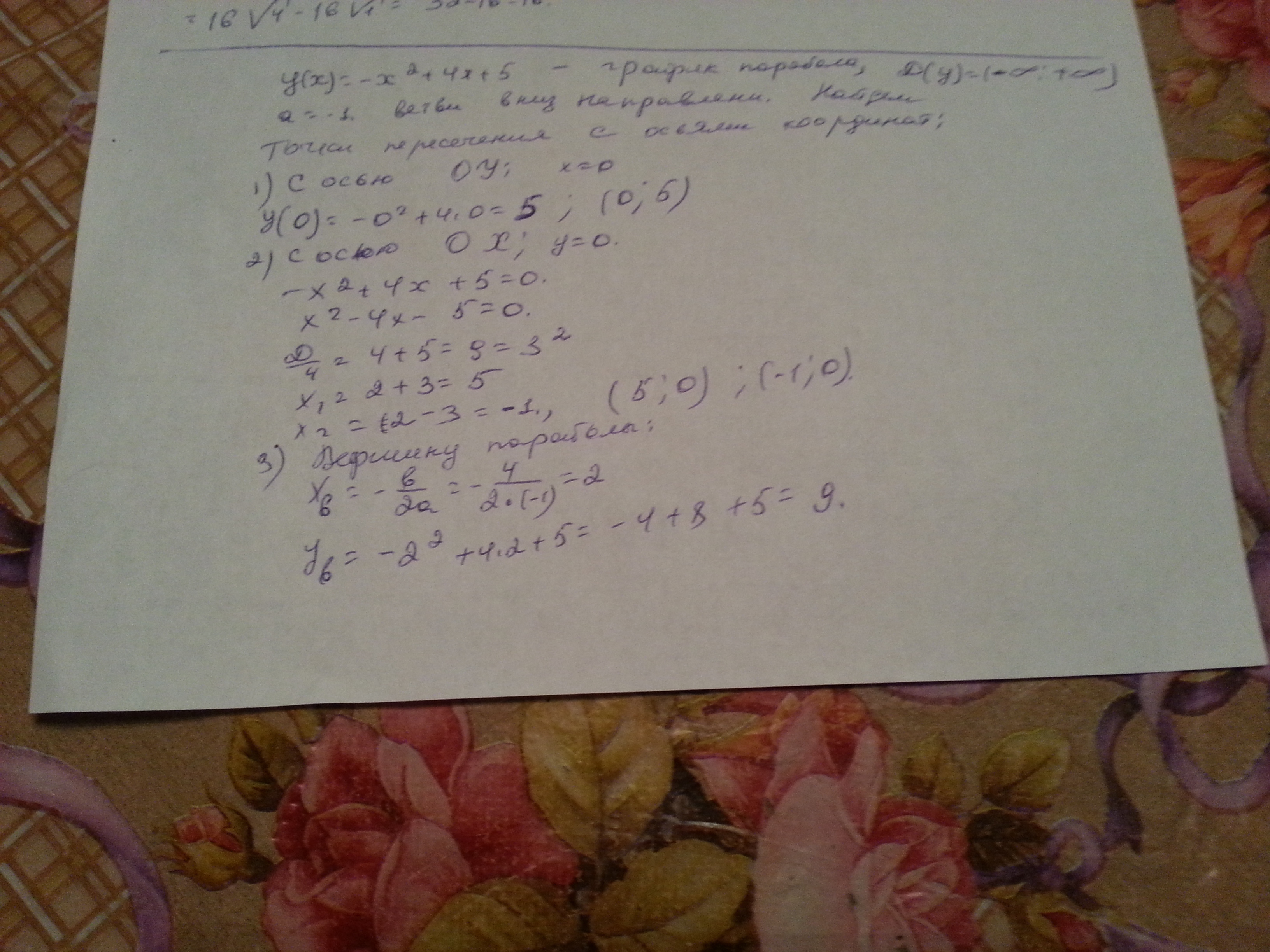 постройте график функции у(х)=-х²+4х+5. Пользуясь графиком функции,найдите промежуток возрастания функции