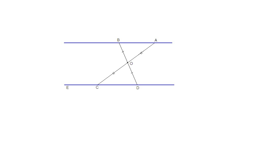 AO=OC, BO=OD.Докажите,что прямые AB и CD параллельны.Б) угол OCE=142.Найдите,при каком значение угла OAB прямые AB и CD параллельны