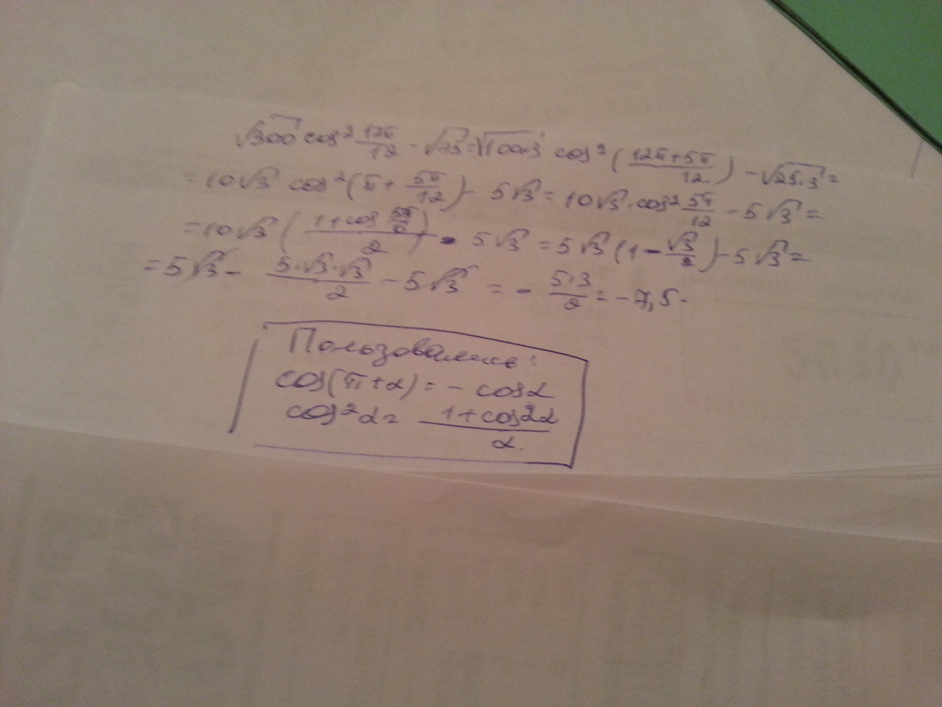 !!! cos²α =(1+cos2α) / 2 и cos(k*π -α) = - cosα , если k нечетное число.