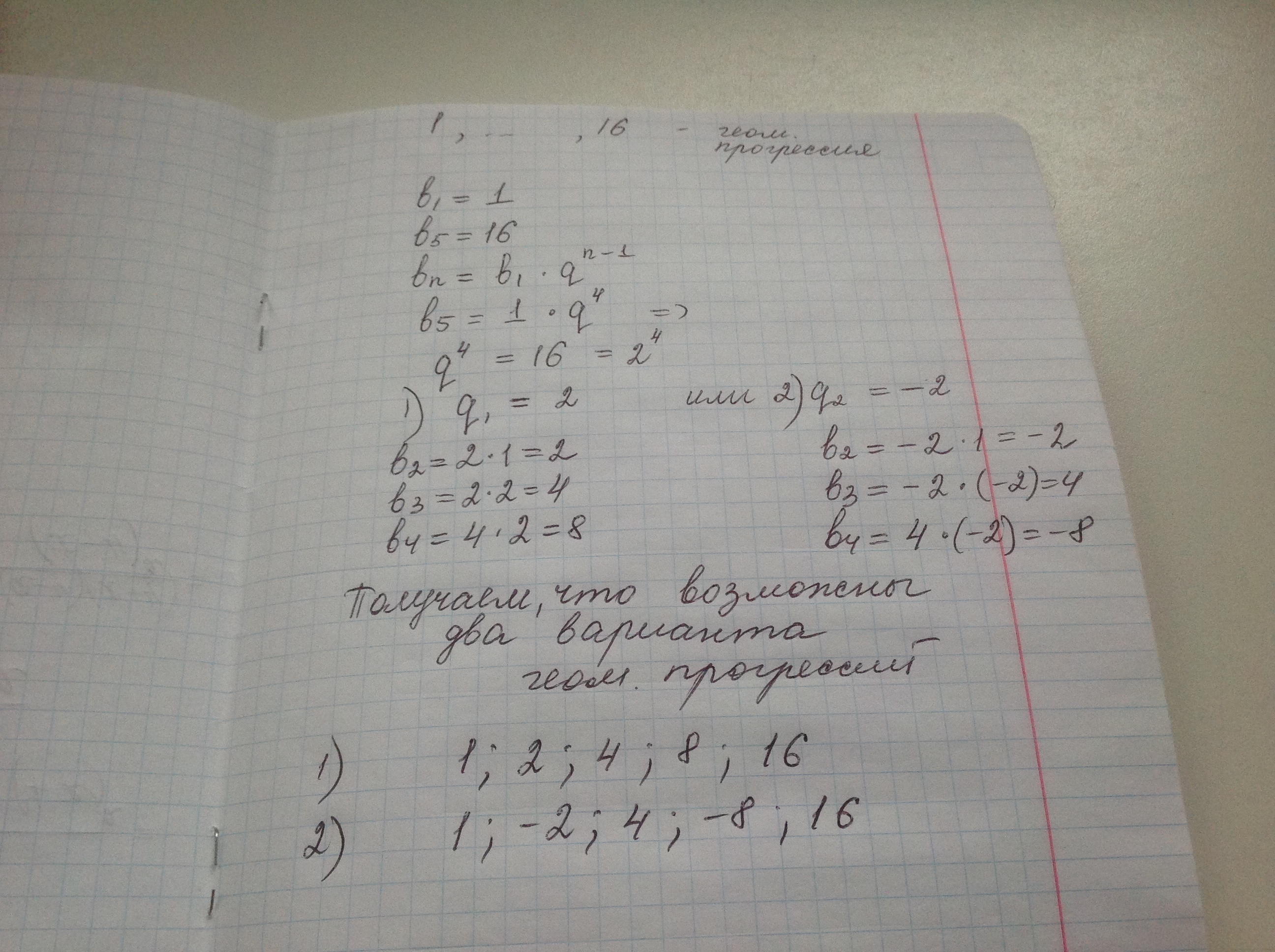 Между числами 1 и 16 вставьте три таких числа, что бы они вместе с данными числами образовали геометрическую прогрессию.