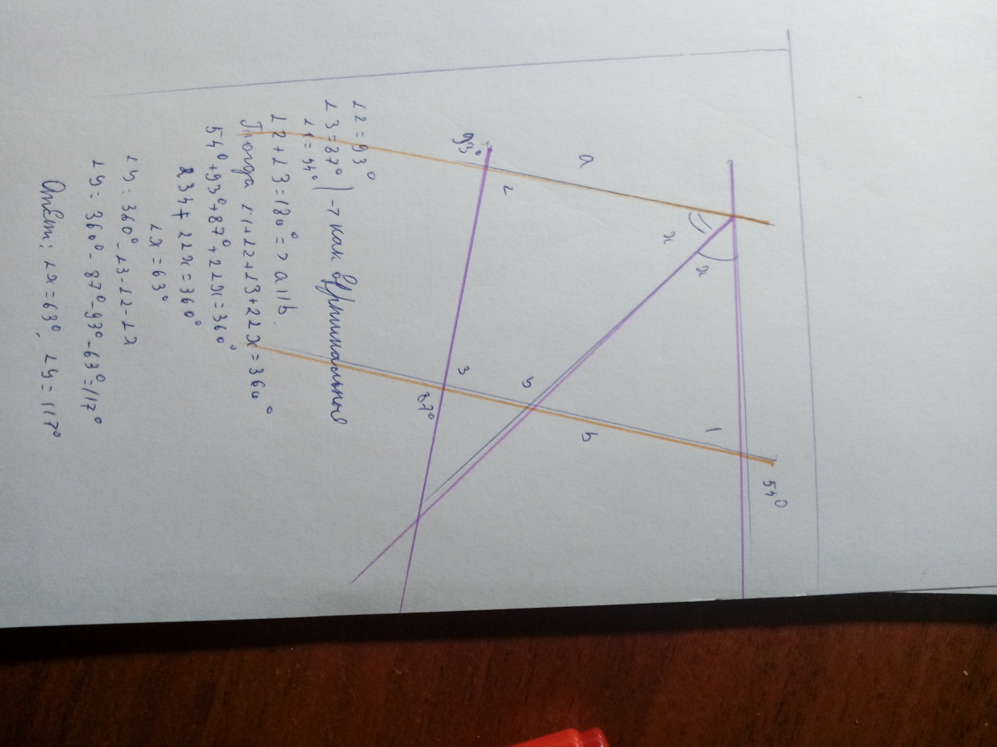 Прямые параллельные, 87 +93 = 180, согласна с вашими ответами х =63, у = 117