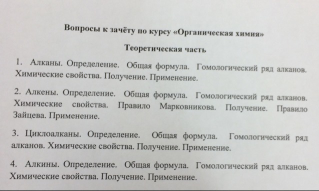 1) Алканы-углеводороды, атомы углерода в которых соединены простыми связями. Общая формула - CnH2n+2. Алканы, число атомов углерода в которых больше трёх, имеют изомеры. Алканы имеют низкую химическую активность. Это объясняется тем, что единичные связи C—H и C—C относительно прочны, и их сложно разрушить. Главным источником алканов (а также других углеводородов) являются нефть и природный газ, которые обычно встречаются совместно. Предельные углеводороды находят широкое применение в самых разнообразных сферах жизни и деятельности человека. Газообразные алканы (метан и пpопан и бутановая смесь) используются в качестве ценного топлива.