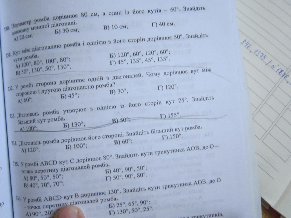 Диагональ со стороной ромба образует половину острого угла ромба.