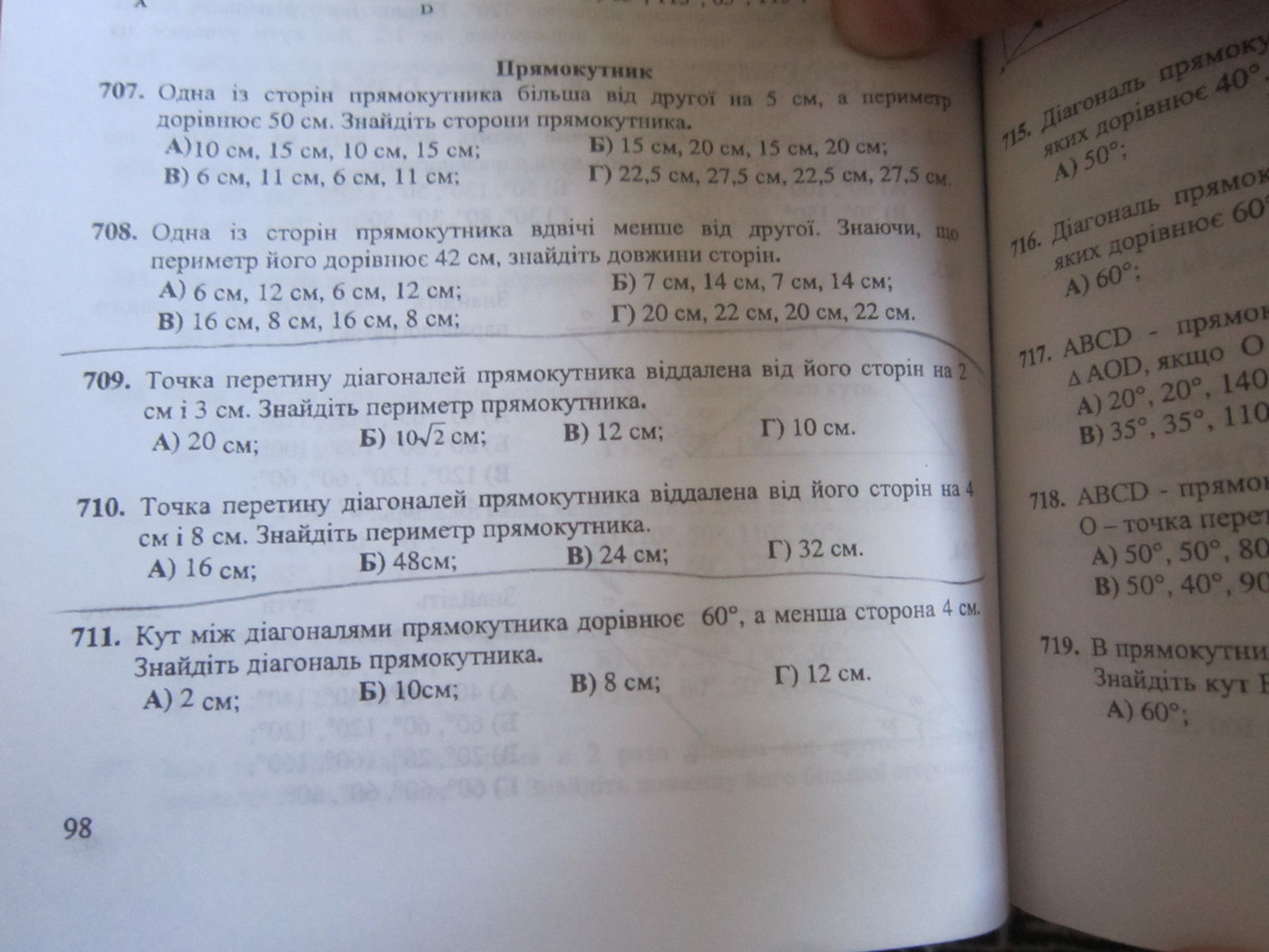 Меньшая сторона 2*2 -расстояние от точки пересечения диагоналей, большая 2*3
