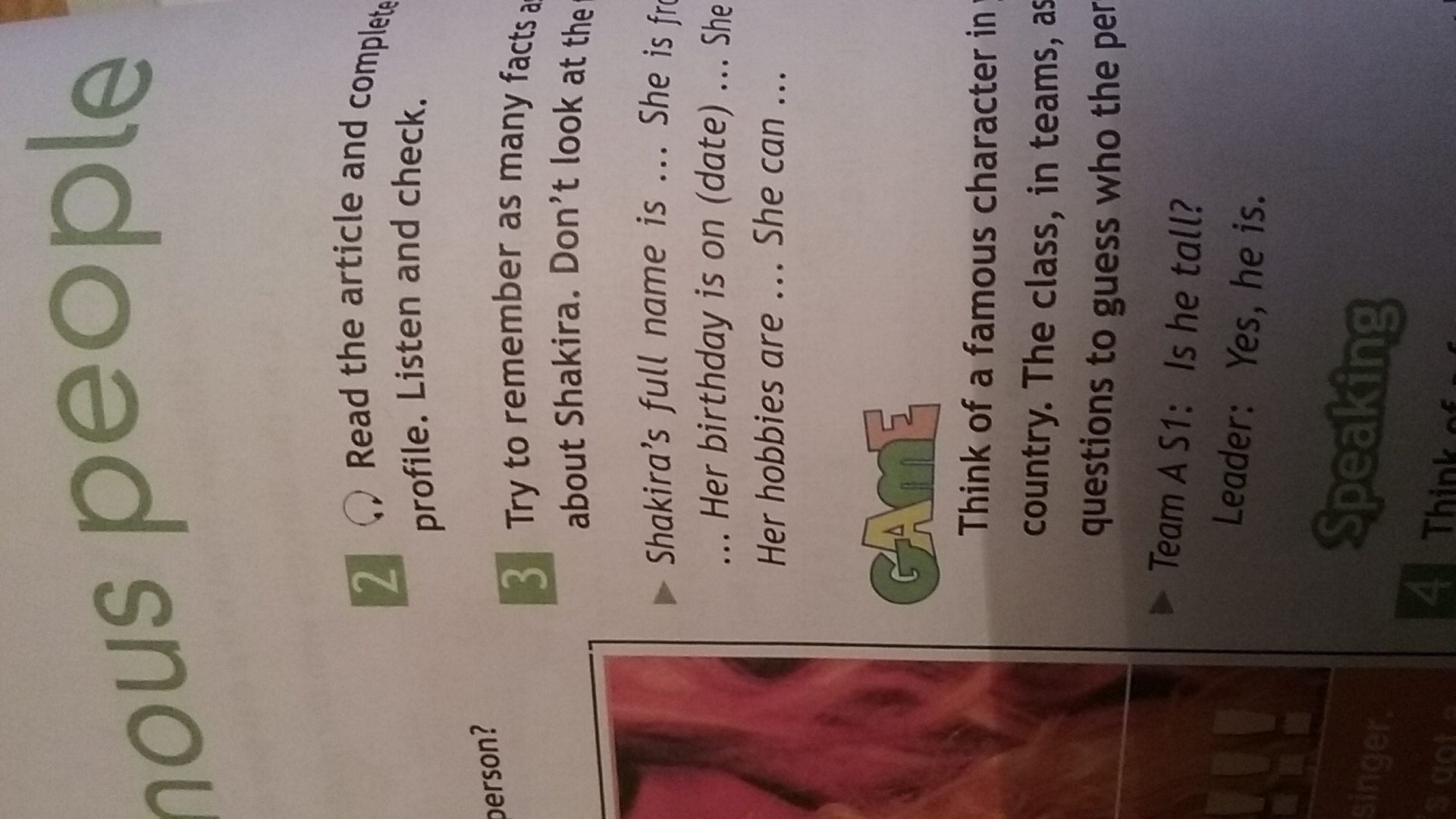 Shakira's full name is Shakira Isabel Mebarak Ripoll. She is from (place) Colombia, South America. Her birthday is on (date) 2nd February 1977. She has got four brothers and four sisters. Her hobbies are painting and listening to jazz. She can speak five languages, dance and sing.