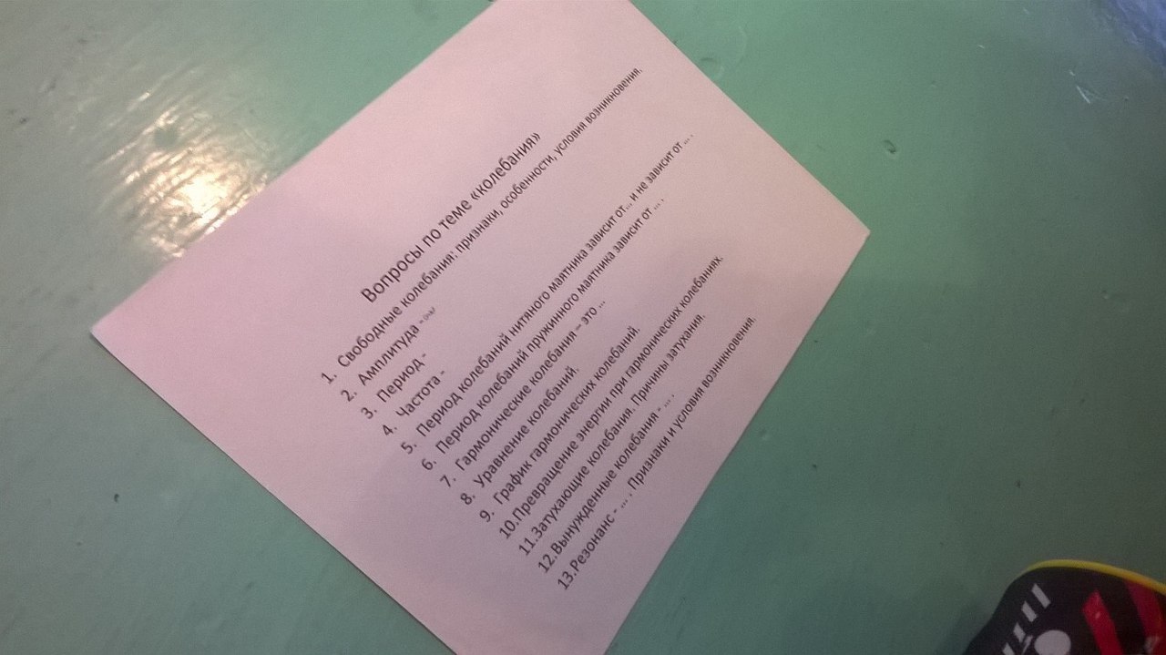 6. Период колебаний пружинного маятника зависит от массы колеблющего груза и от жёсткости пружины на котором подвешен груз.
