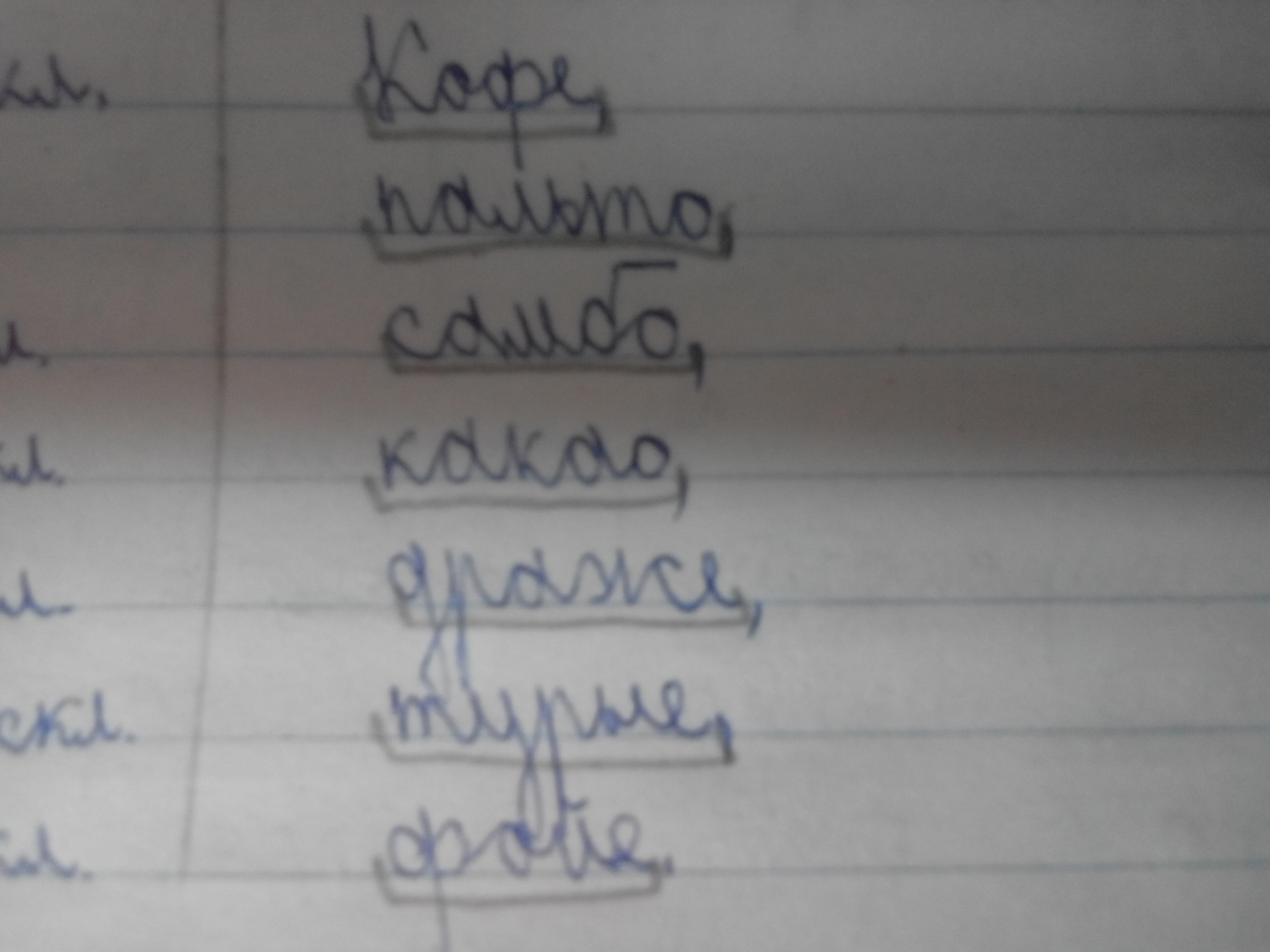 Кофе(м.р.), пальто(ср.р.), самбо(ж.р.), какао(ср.р.), драже(ср.р.) турне(ср.р.), фойе(ср.р.).