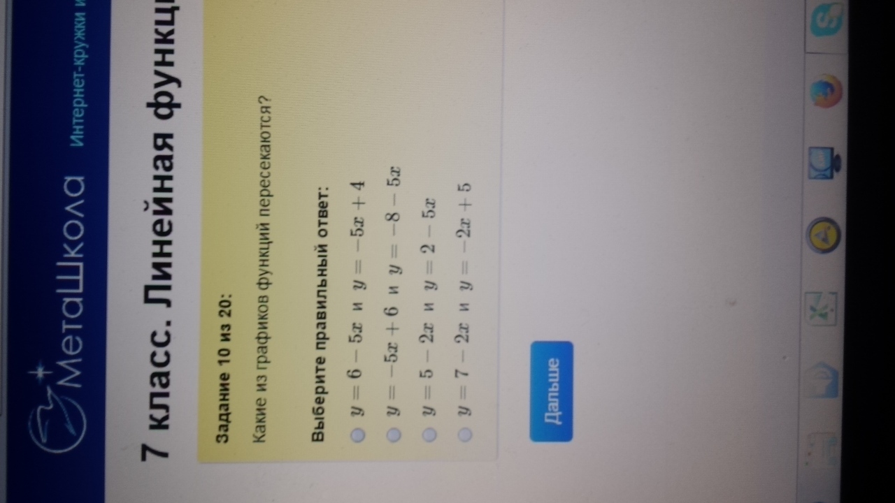 данные функции линейные . общего вида y=kx+b если к1 не равно к2 значит эти прямые пересекутся. ответ третий вариант
