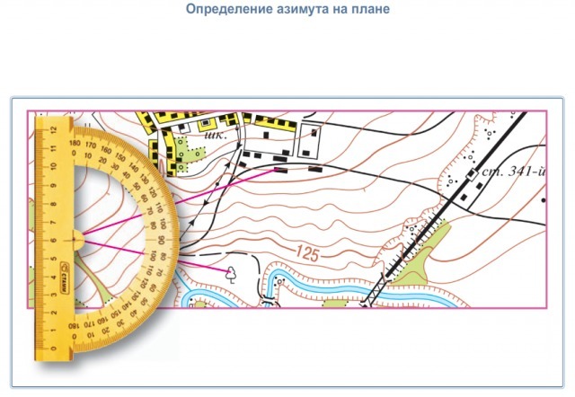Например: с помощью транспортира найди азимут на колодец от домика лесника.
