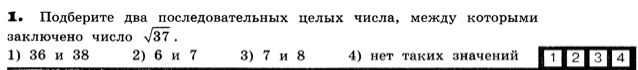 6 и 7 (вариант 2), т.к. корень из 37 будет равен 6.08.