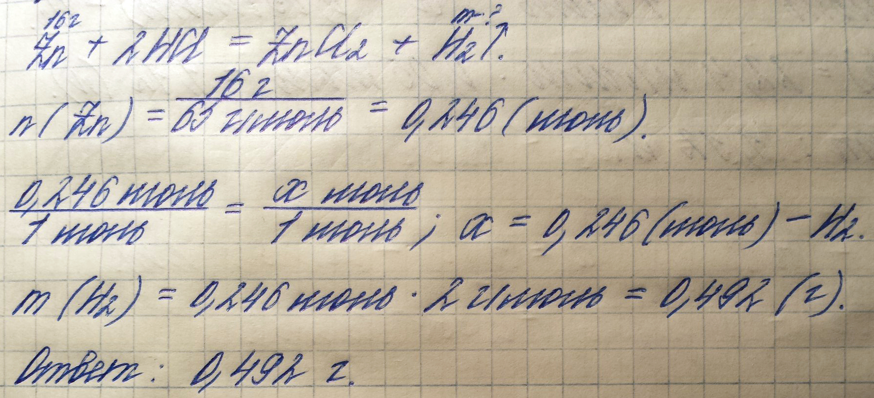 n(Zn)=16/65=0.25