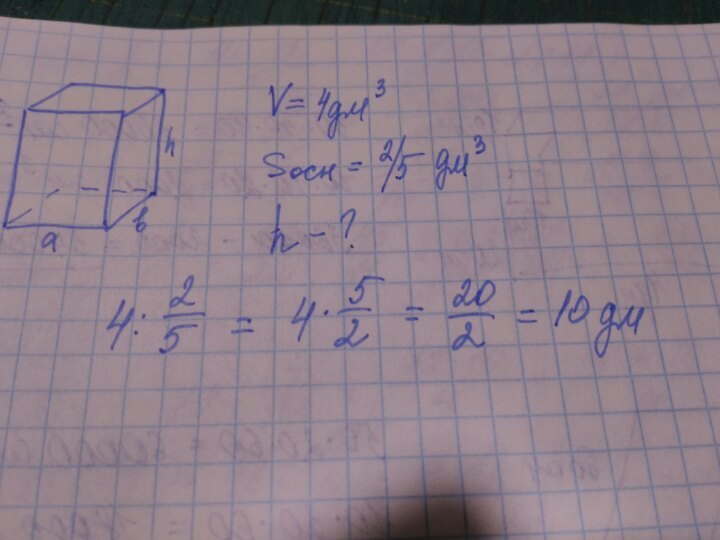 Обьём прямоугольного параллепипеда равен 4 дм (В кубе)