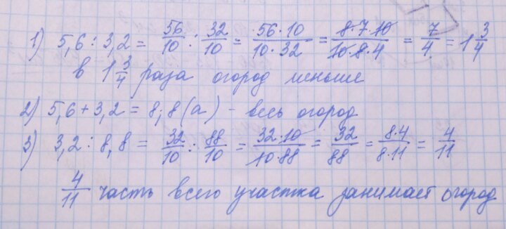 5,6/3,2=1,75 р - во столько раз площадь огорода меньше площади сада