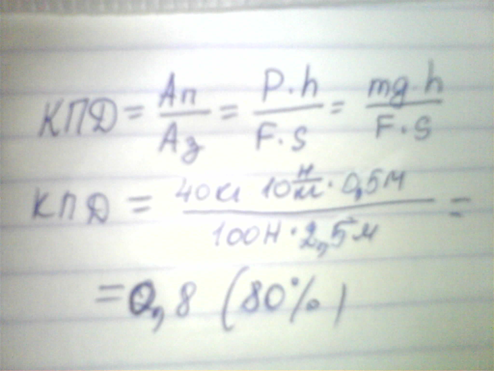 Высота наклонной плоскости равна 2,5м , а высота 50 см . Для поднятия по наклонной плоскости груза массой 40 кг требуется приложить силу 100 Н .Каков КПД наклонной плоскости?