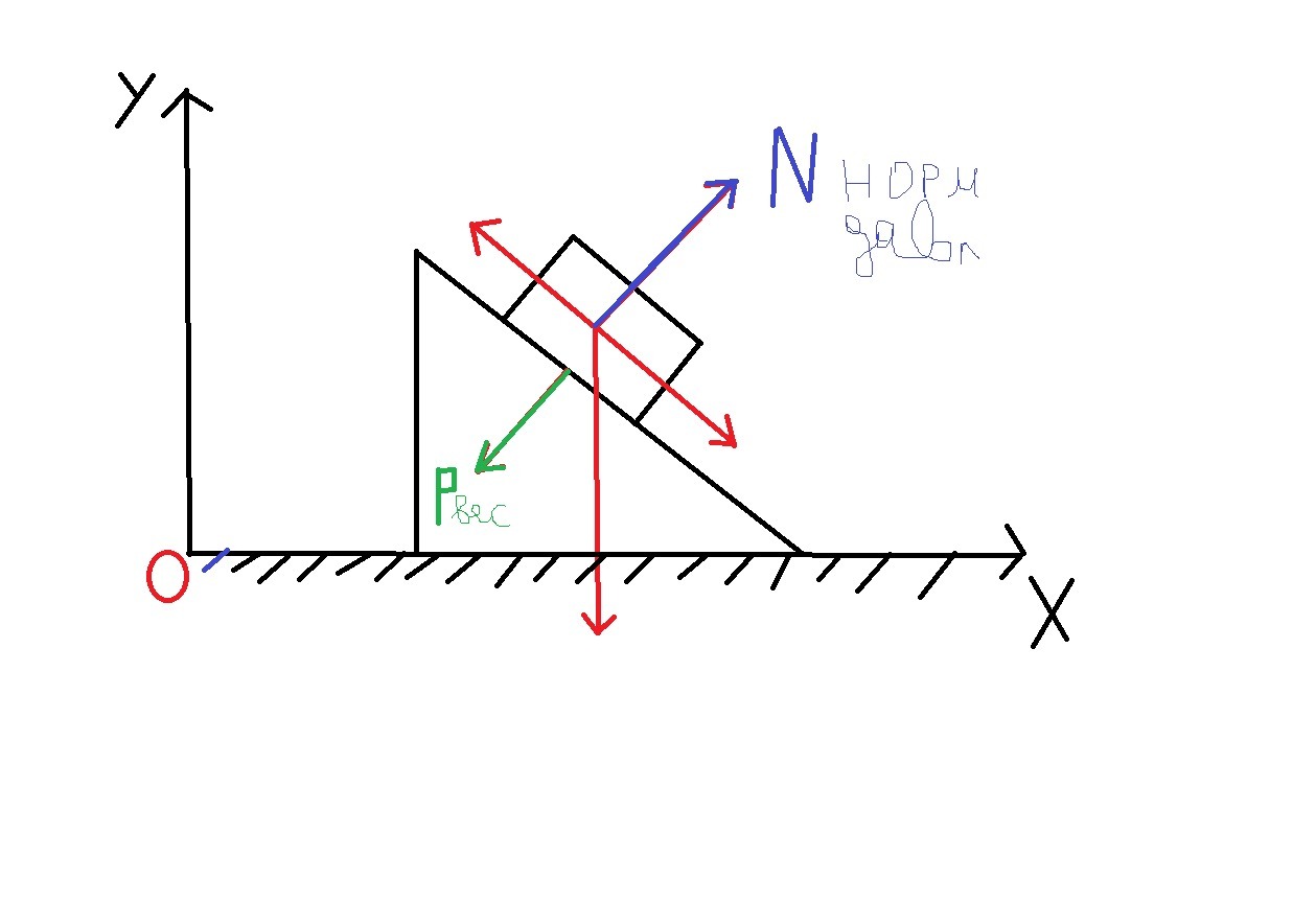 На схеме вес- зеленый, синий- сила реакции опоры или норм. давления.