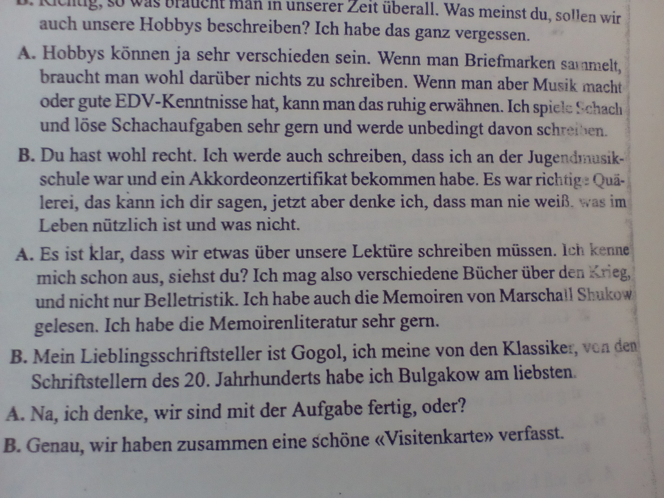 А. понятно, что мы должны что-то написать о нашей книге. я уже разбираюсь в этой теме, видишь? Мне, к примеру, нравятся различные книги о войне, а не только беллетристика. я также читал мемуары маршала Жукова. Мне очень нравятся мемуары.