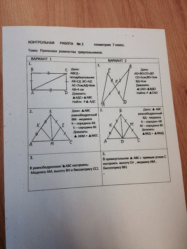 1. Т.к ВС=АД , АВ=СД ,а АС - общая ,то АДС=АВС ( по трем сторонам ),ч.т.д