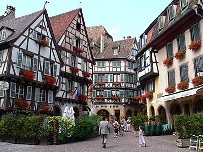 В Германии я думаю что это вопрос про фахрверковую архитектуру. Конструктивно фахверки представляют собой каркас-раму из вертикальных, горизонтальных и косо поставленных балок. Стабильность и устойчивость конструкции достигалась благодаря ее весу. Балки делали чаще всего из дуба, отличающегося долговечностью и прочностью. Для верхних этажах могла использоваться древесина сосны или ели.