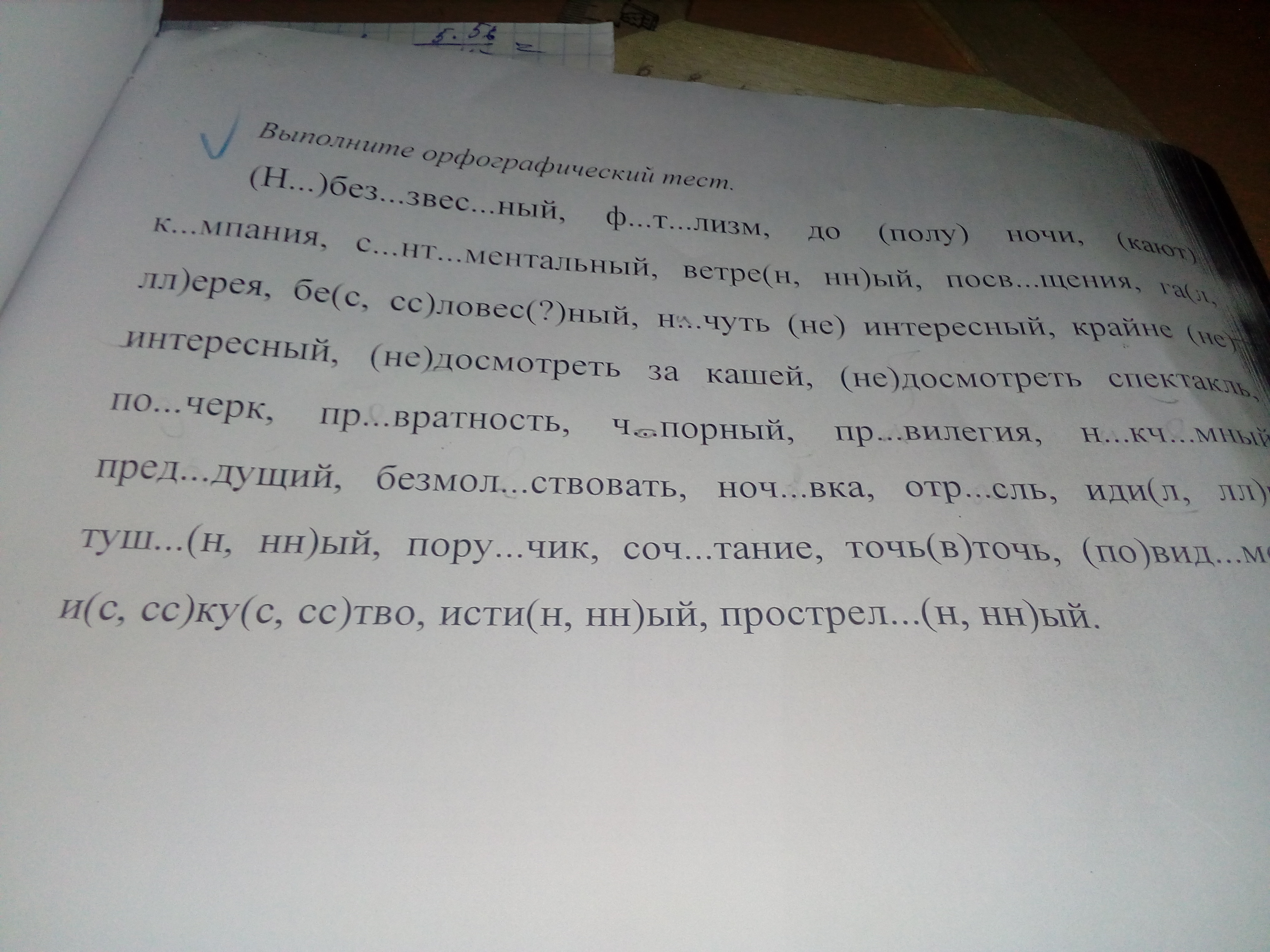 Небезызвестный, фатализм, до полуночи, кают компания, сентиментальный, ветреный, посвящения, галерея, бессловесный, ничуть не интересный, недосмотреть за кашей, не досмотреть спектакль, почерк, превратность, чопорный, привилегия, никчемный, предыдущий, безмолвствовать, ночевка, отрасль, идиллия (не уверена, что именно это слово в задании), тушеный, поручик, сочетание, точь-в-точь, по-видимому (?), искусство, истинный, простреленный