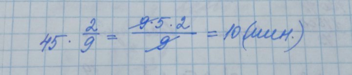 2/9 * на 45 минут, получается 9 и 45 сокращаем и следовательно 2*5=10 Минут.