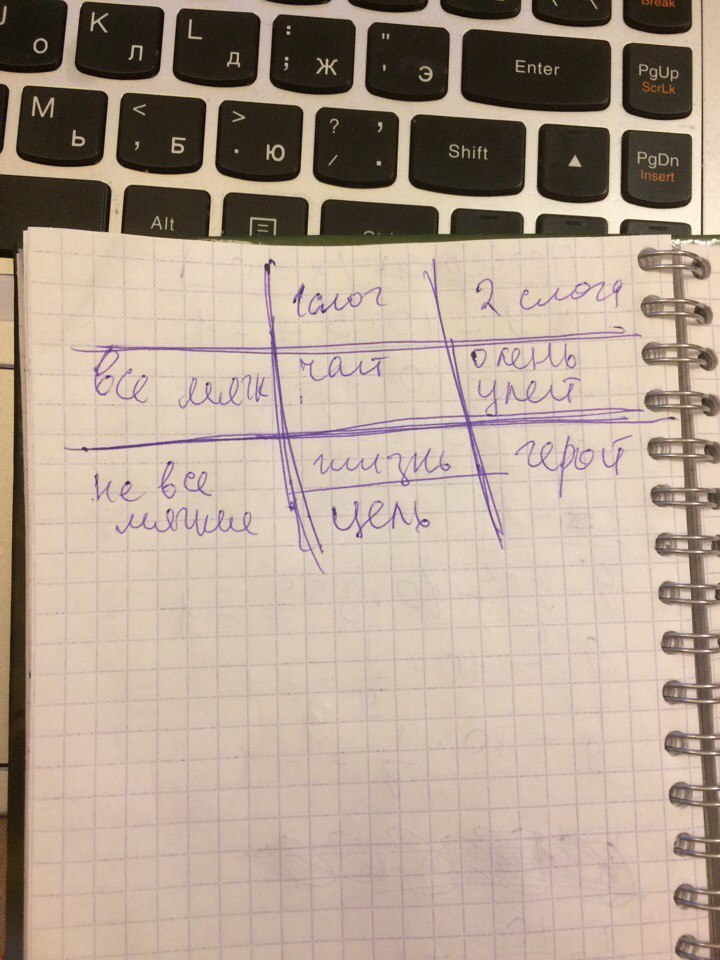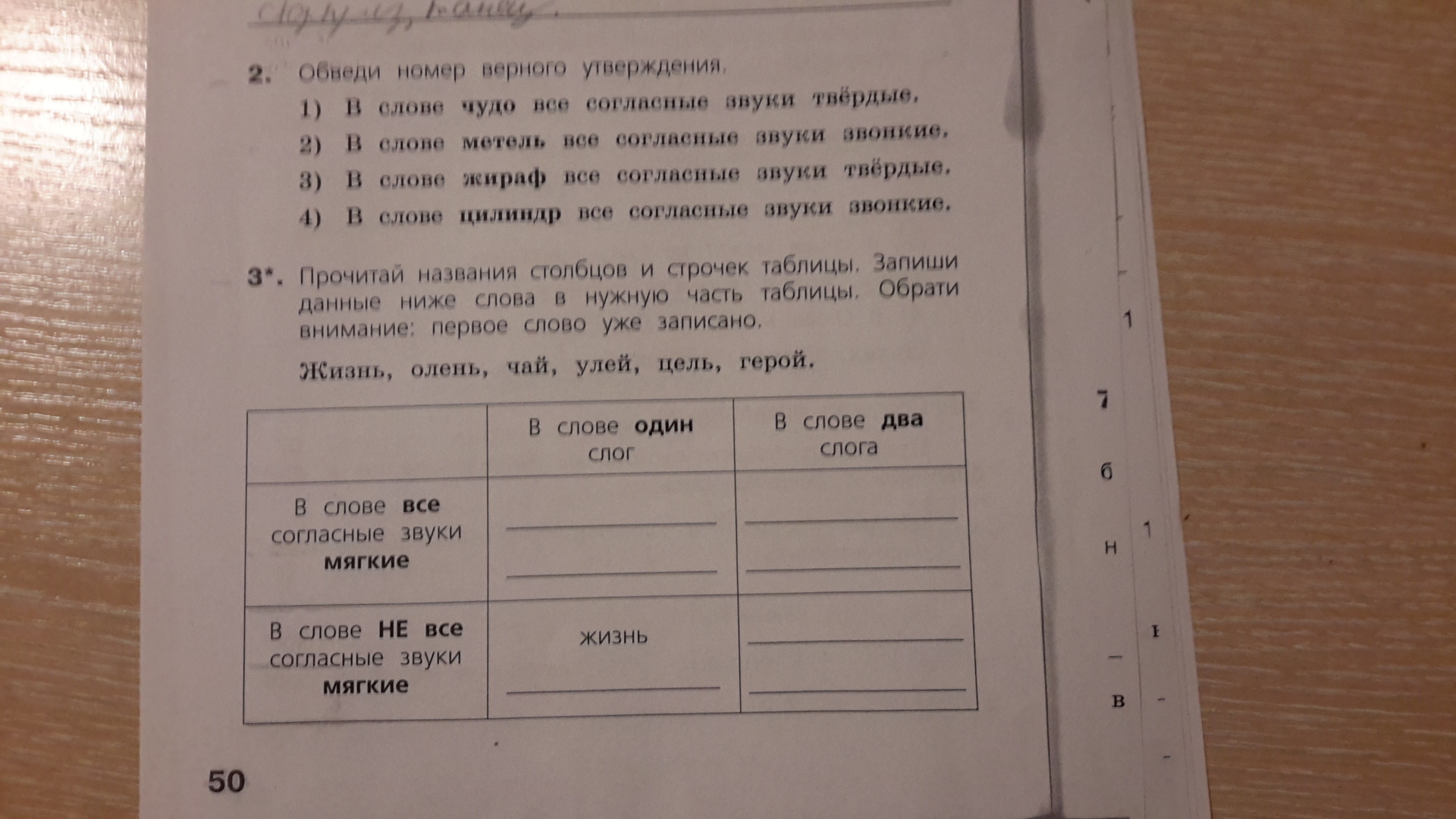 Чай - один слог, все мягкие,улей- два слога, все мягкие, цель-один слог,не все мягкие, герой - два слога, не все мягкие.