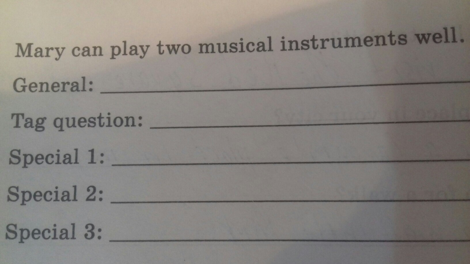 Может быть, один из специальных вопросов должен быть к подлежащему? Who can play two musical instruments well?