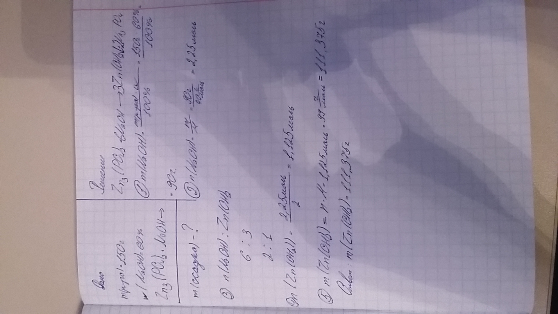 2.Вычислите массу осадка, образованного при взаимодействии фосфата цинка и 150 г 60% раствора гидроксида натрия.