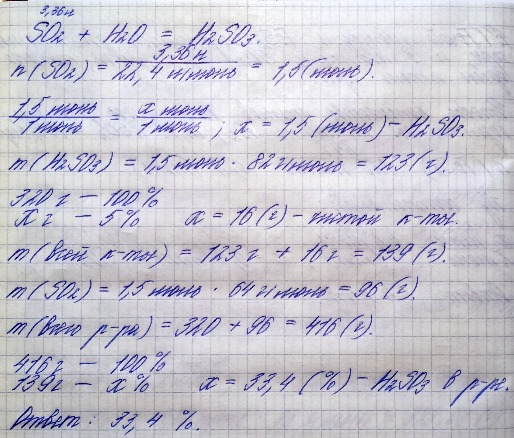 В 320 г 5% ого раствора сернистой кислоты растворили 33,6 л сернистого газа (н. у.).Массовая доля кислоты в полученном растворе равна?