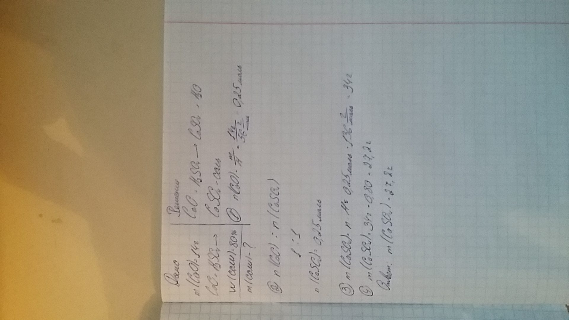14г оксида кальция обработали раствором серной кислоты. Сколько грамм соли образовалось, если выход соли составляет 80%