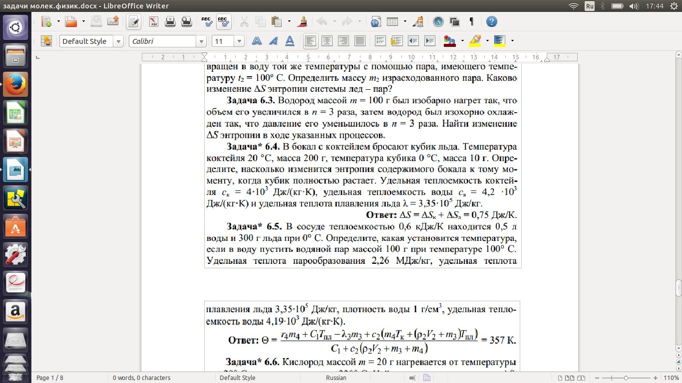 ∆Sв = cm ∆lnTв = cm (lnTк–lnT) = cm ln|Tк/T| , где Tк – конечная температура коктейля с растворённым кубиком ;