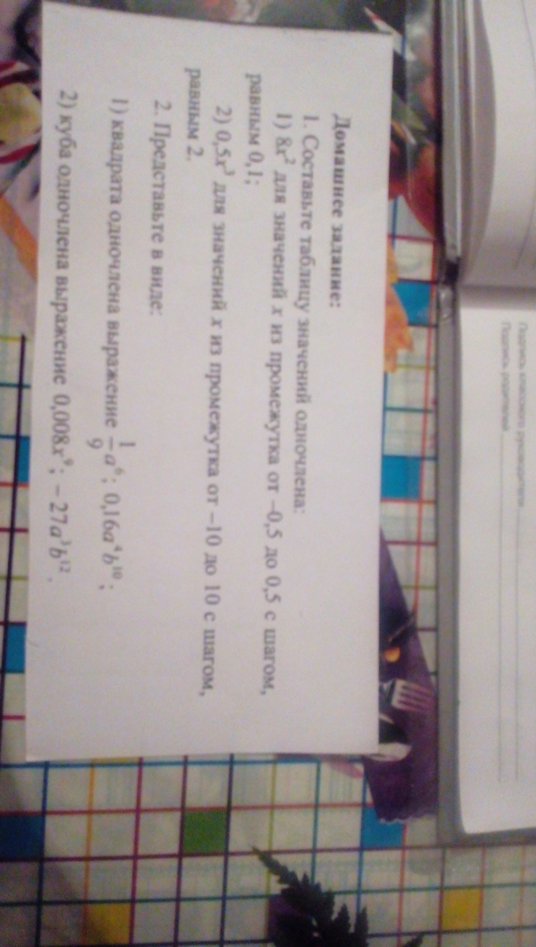 помогите,СРОЧНО ПОЖАЛУЙСТА. Составьте таблицу значений одночлена:
