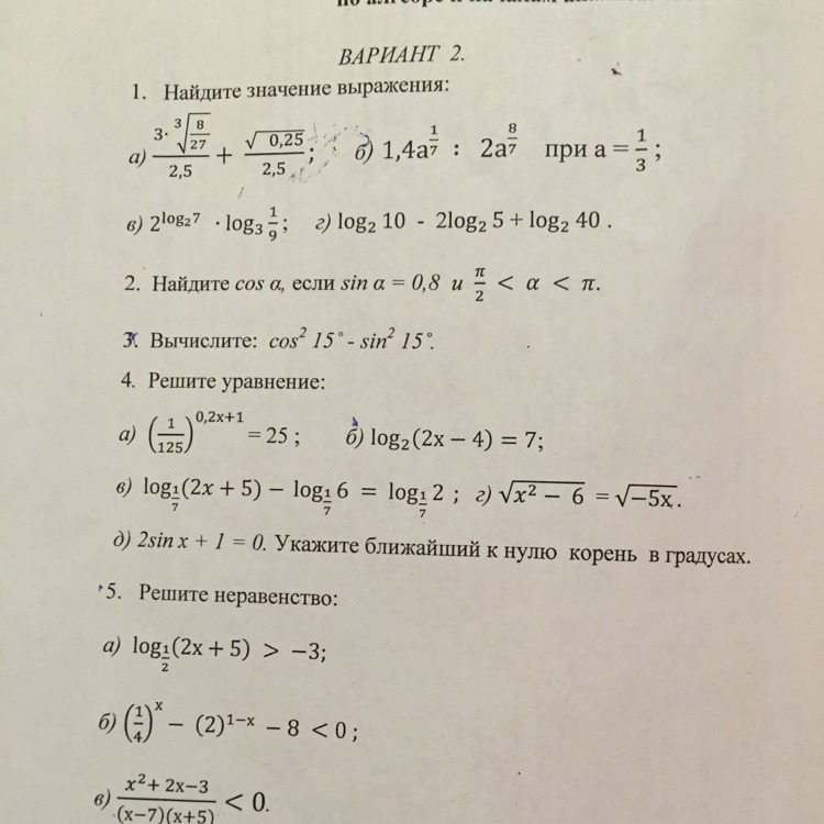 2)cos α=√(1-sin²α)=√(1-0.8²)=√(1-0.64)=√0.36= - 0.6 так как α находиться в промежутке от π/2 до π