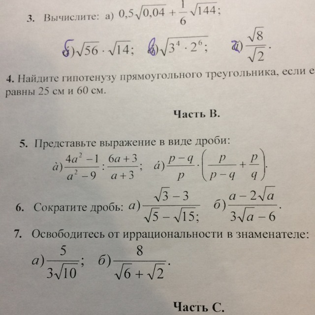 7) А) -3/5; В) 4/ корень из 3
